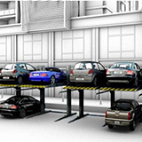 升降橫移類機械車庫主要靠上層載車板上下升降和下層載車板左右橫移運動實現存取車輛的一款停車設備。也是目前市場上占有率較高的一款設備。