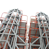 垂直升降類自動停車系統也稱為停車塔庫,通過升降機進行車輛的垂直升降動作,由每個車位的橫移梳架完成車輛的水平方向交接, 相互配合完成車輛的存取。垂直移動每個停車層停放兩輛車,可達30層,占地面積僅50㎡,平均每輛車占地面積少于1㎡,取車 時間平均為60秒,是所有自動停車系統中空間利用較高速度較快的停車設備。適用于現代化城市中極小型的地塊, 解決高密度停車,也是城市中靚麗的風景線。